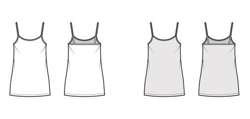 Strap Sun Dress Technical Fashion Illustration With Deep V Neck Maxi Ancle Length Loose Shape Semi Sircular Fullness Flat Template Front Back White Grey Color Women Men Unisex Top Cad Mockup Apparel