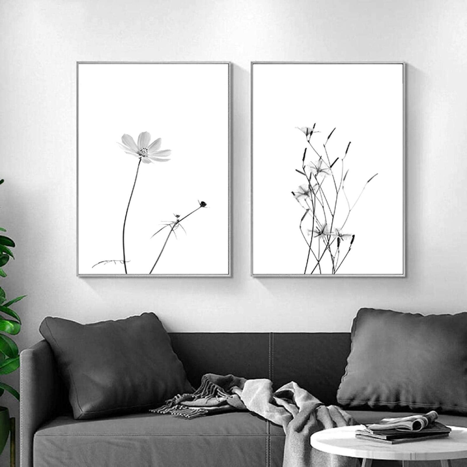 Oil Paintings 2 Piece 19 7x27 6in 50x70cm No Frame Abstract Black And White Flower Painting Wall Art Prints Minimalist Poster Wall Art Pictures Home Room Decor Amazon Co Uk Home Kitchen