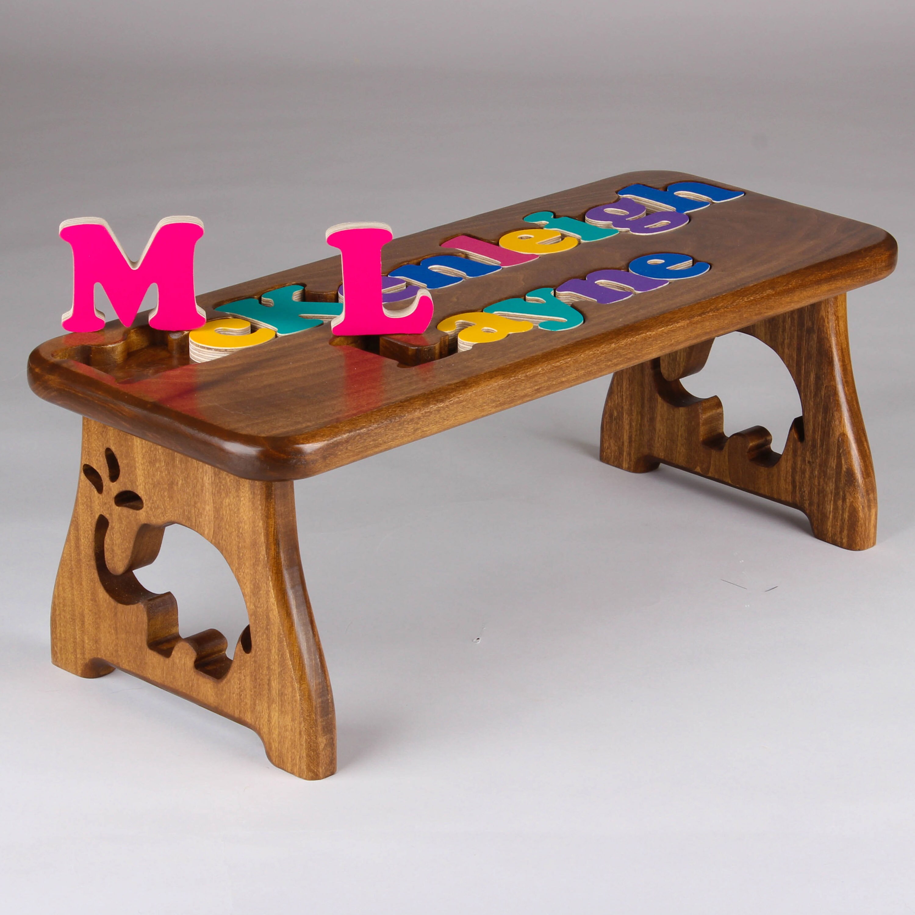 One Name Puzzle Stool Stained Finish 4 Options Craft Carve